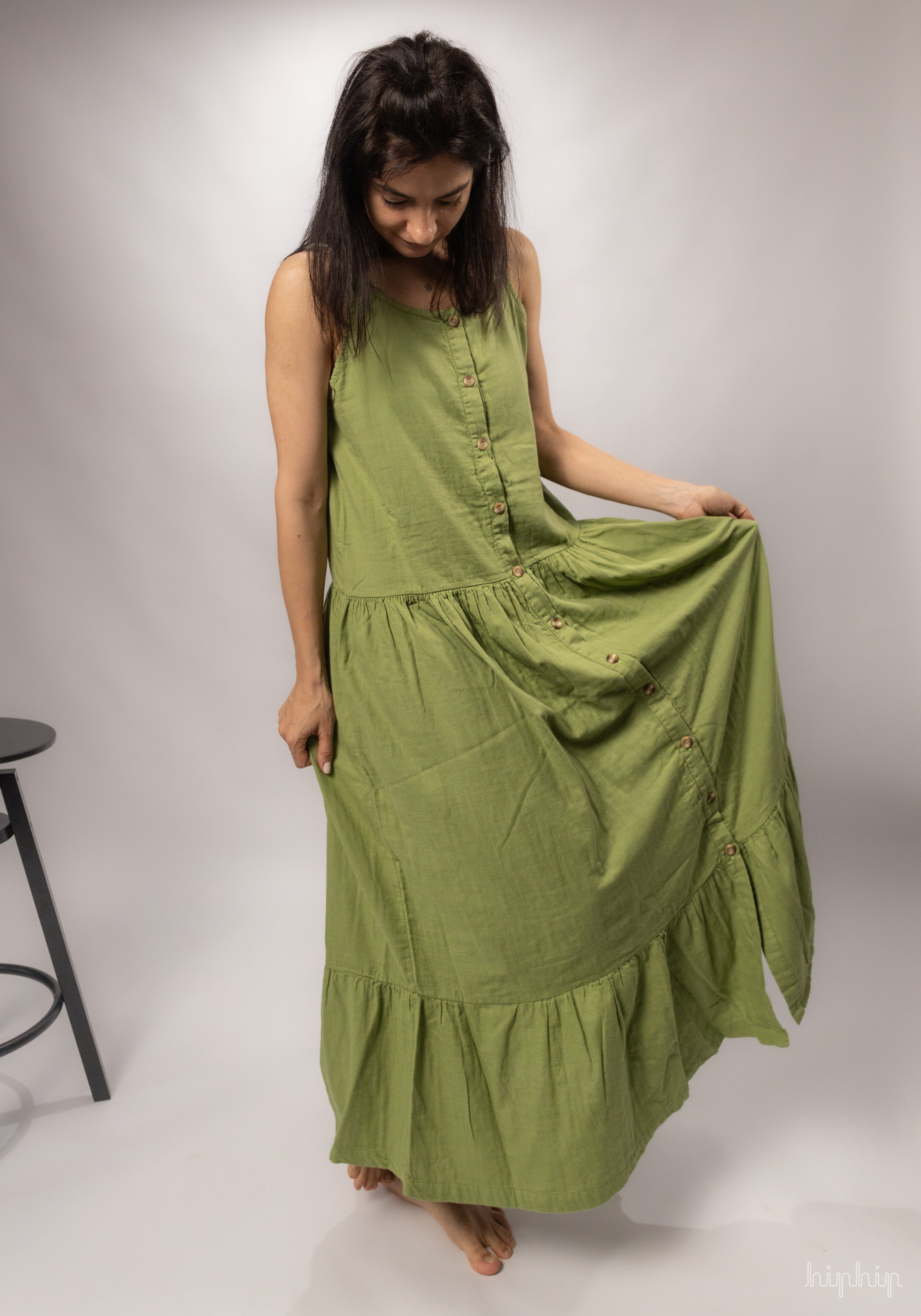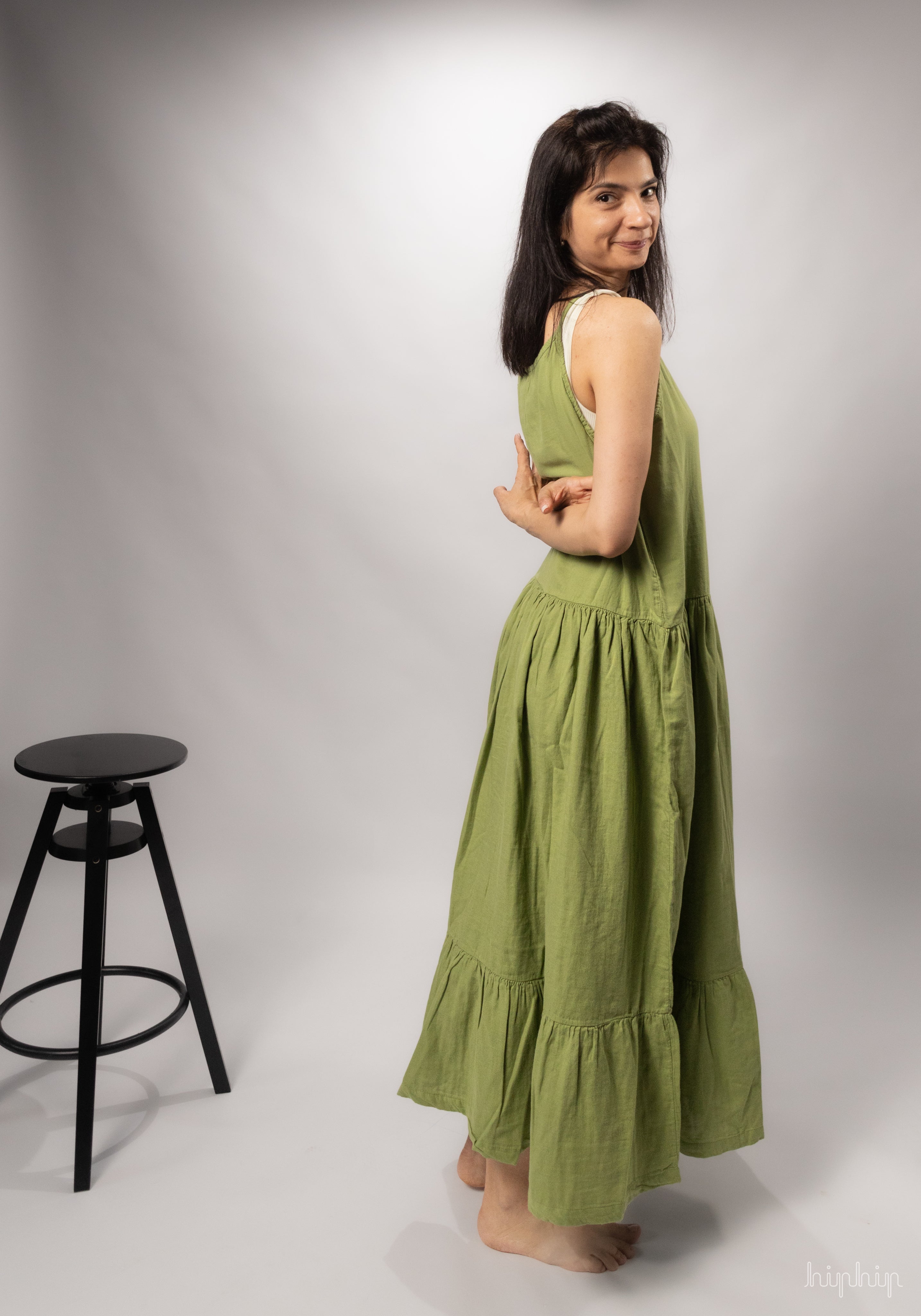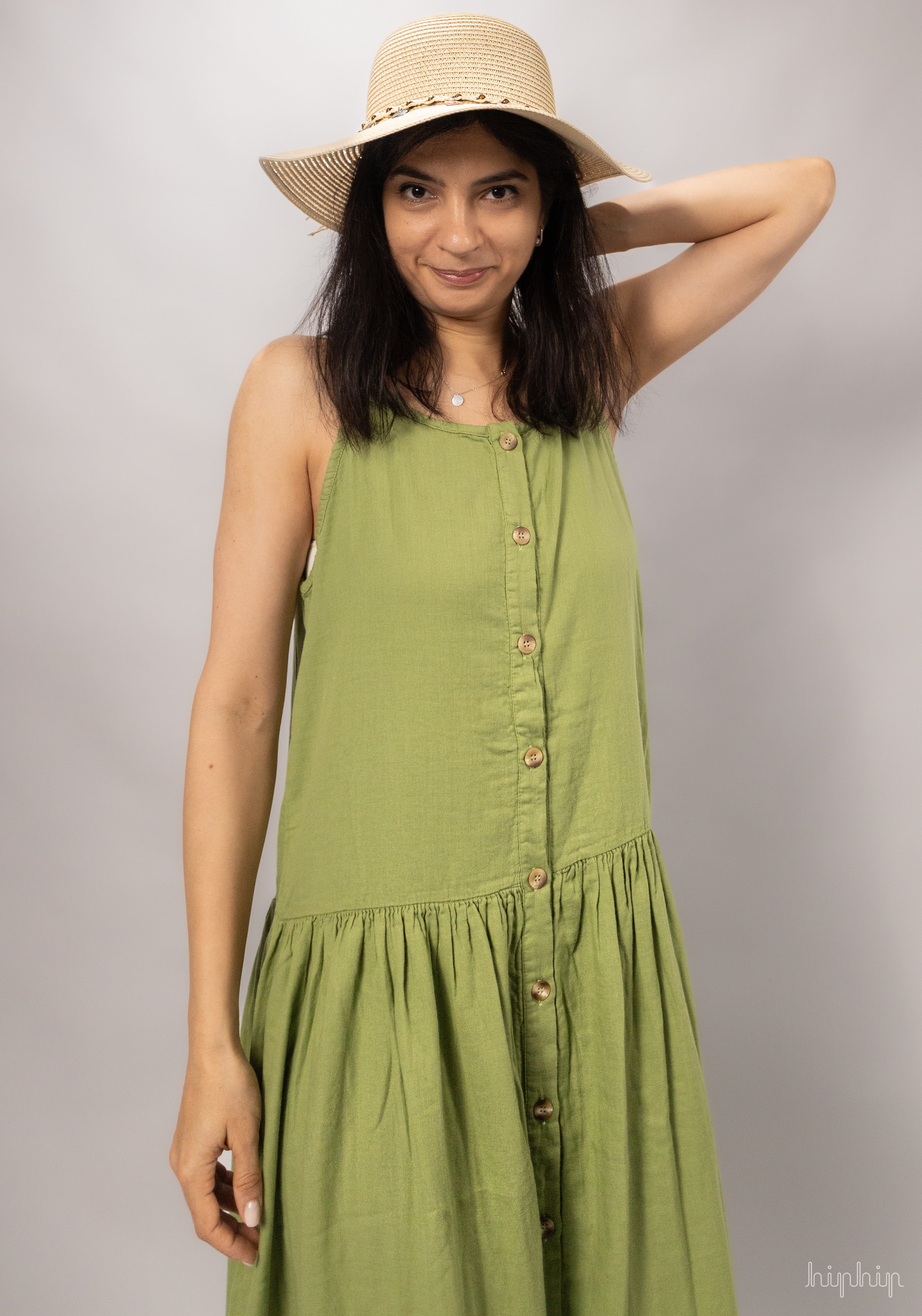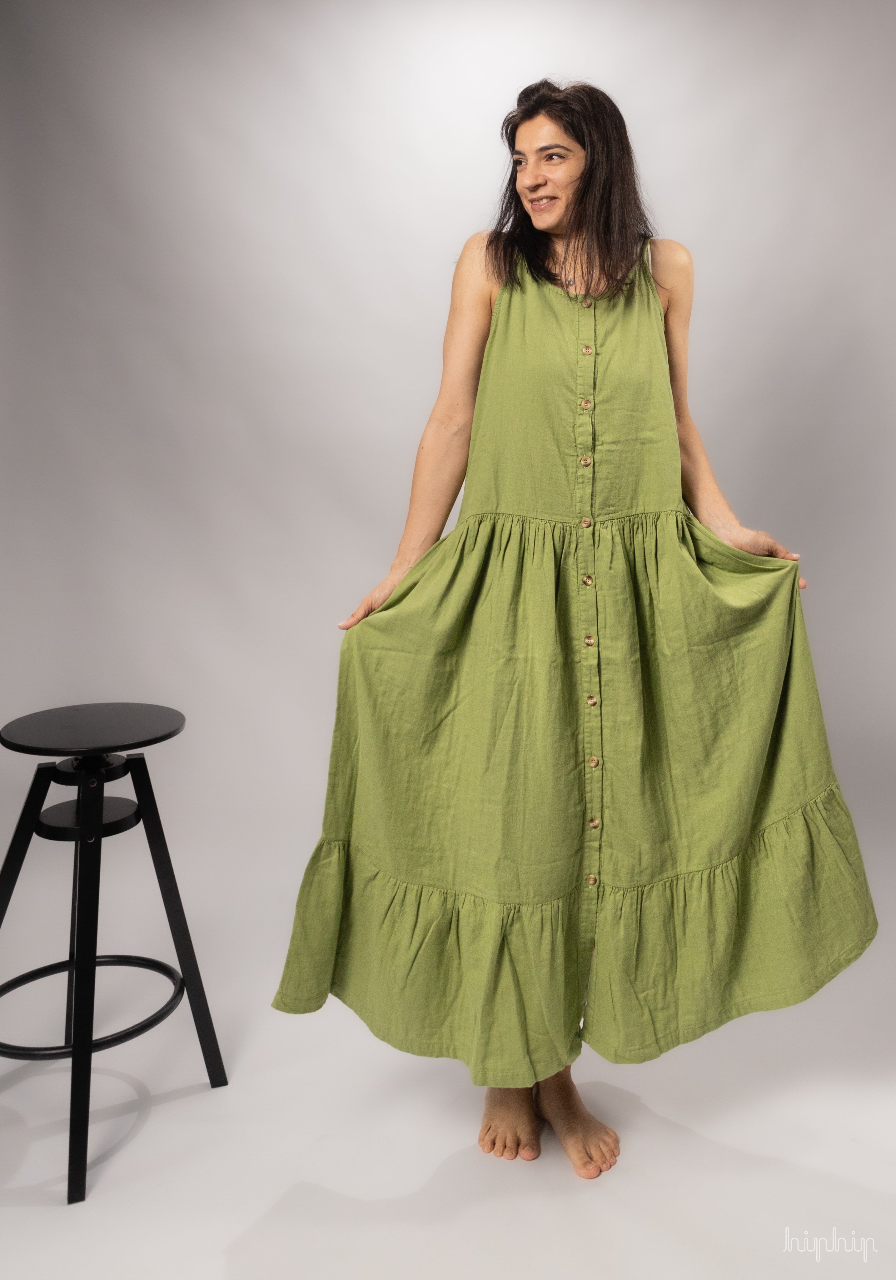 Rochie femei din muselină dublă de bumbac - Celosie Turtle Green