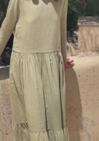 Rochie femei din muselină dublă de bumbac - Garua Olive Gray