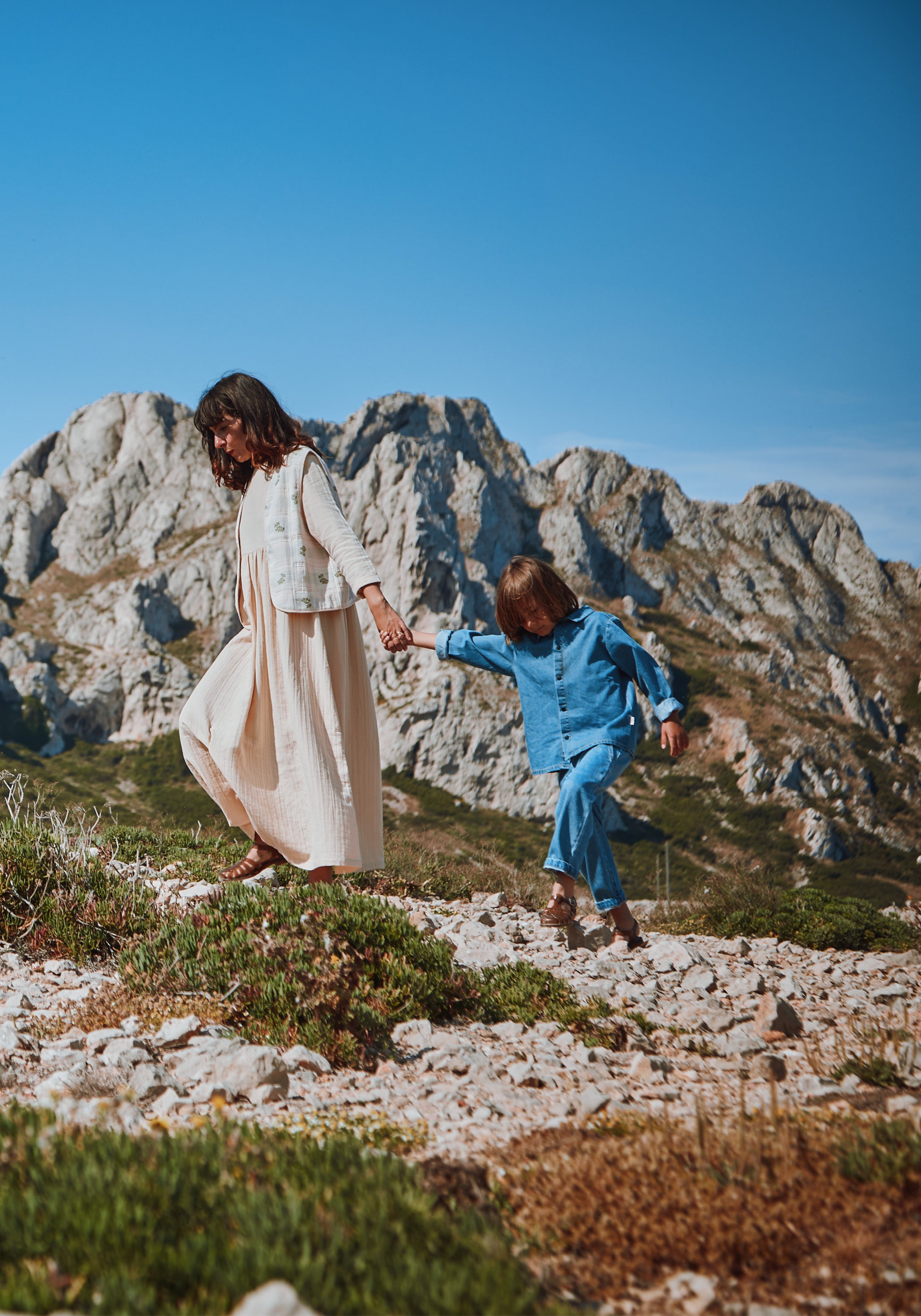 Când vine vorba de decizii ”de business”, Manon și Quentin țin cont în primul rând de impactul asupra mediului. Le vine ușor, pentru că și în viață personală sunt ghidați de principiul ăsta - consum local și rațional. Lucrează, în principal, cu bumbac cultivat organic în Turcia, certificat GOTS și OEKO-TEX, dar și cu in și materiale reciclate, prelucrate cu consum minim de energie.