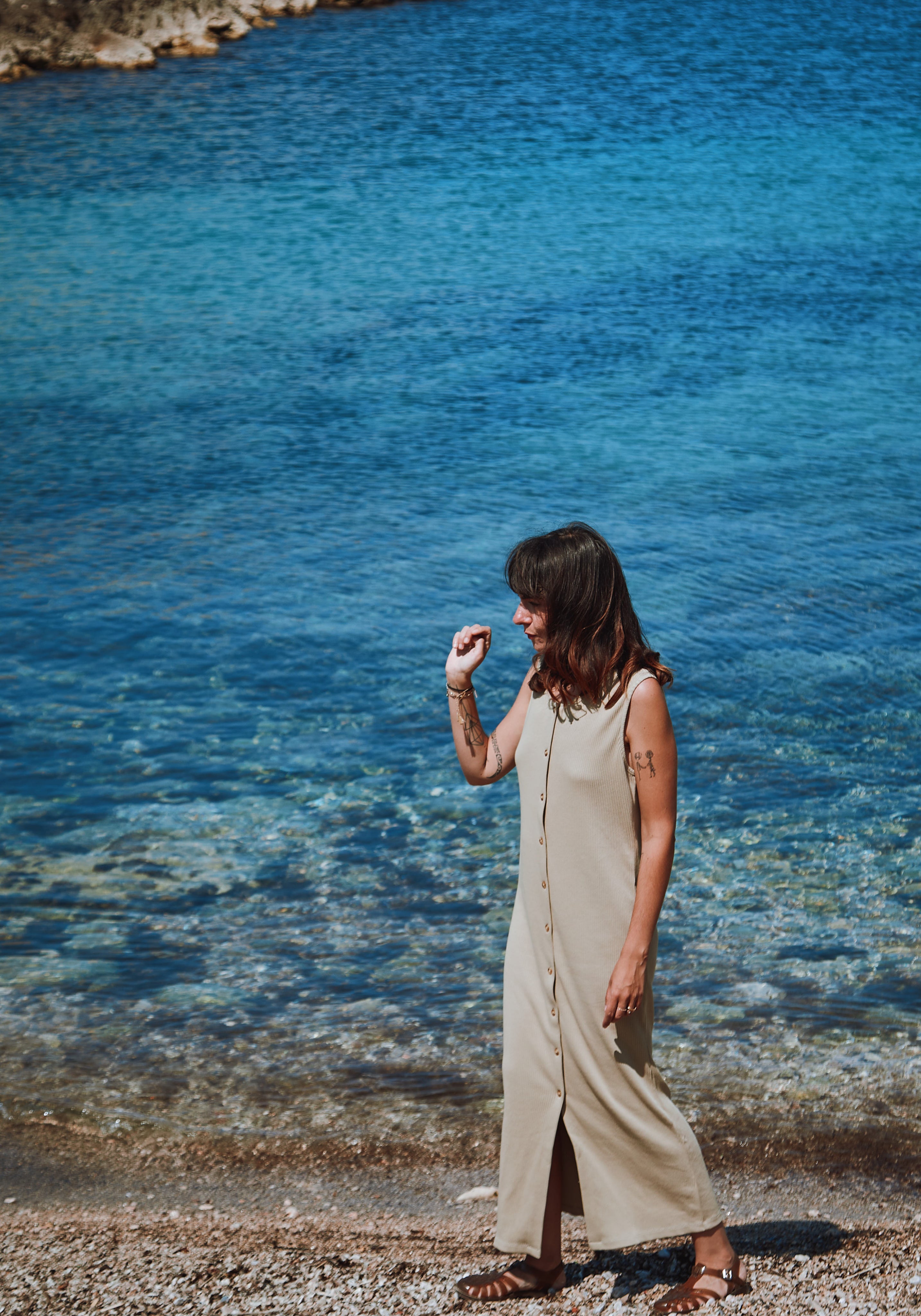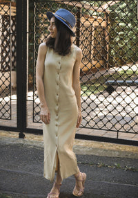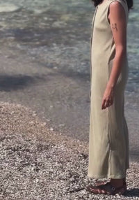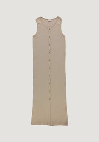 Rochie lungă din bumbac organic, cu efect de alungire a siluetei.
