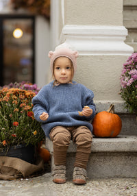 Salopetă din lână merinos cu tesătură rib fină. Poate fi folosit ziua, ca un costum de joaca sau noaptea, ca pijama.