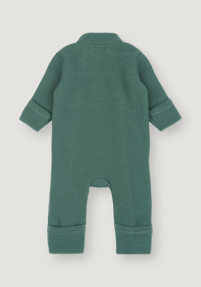 Salopetă cu mănuși și botoși fleece din lână merinos - Balsam Green