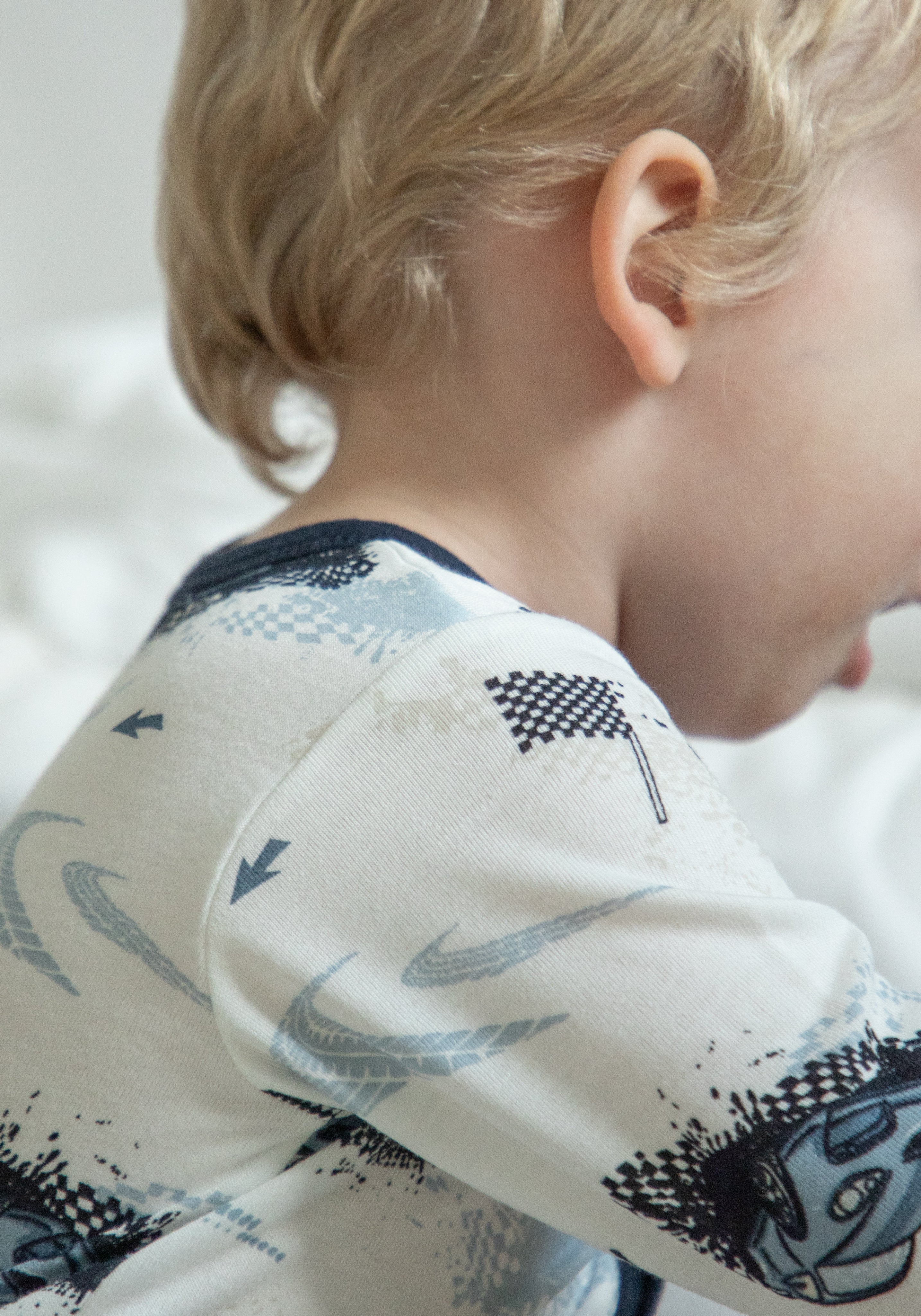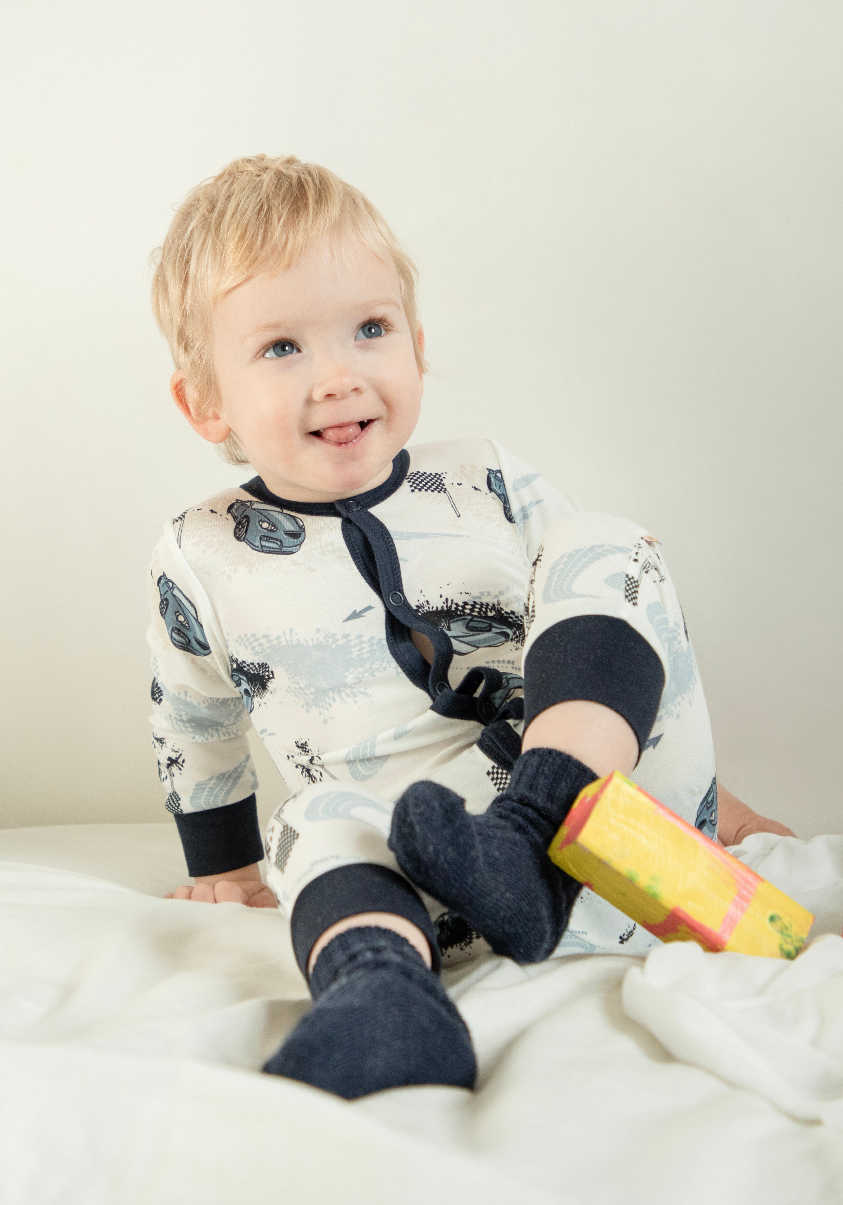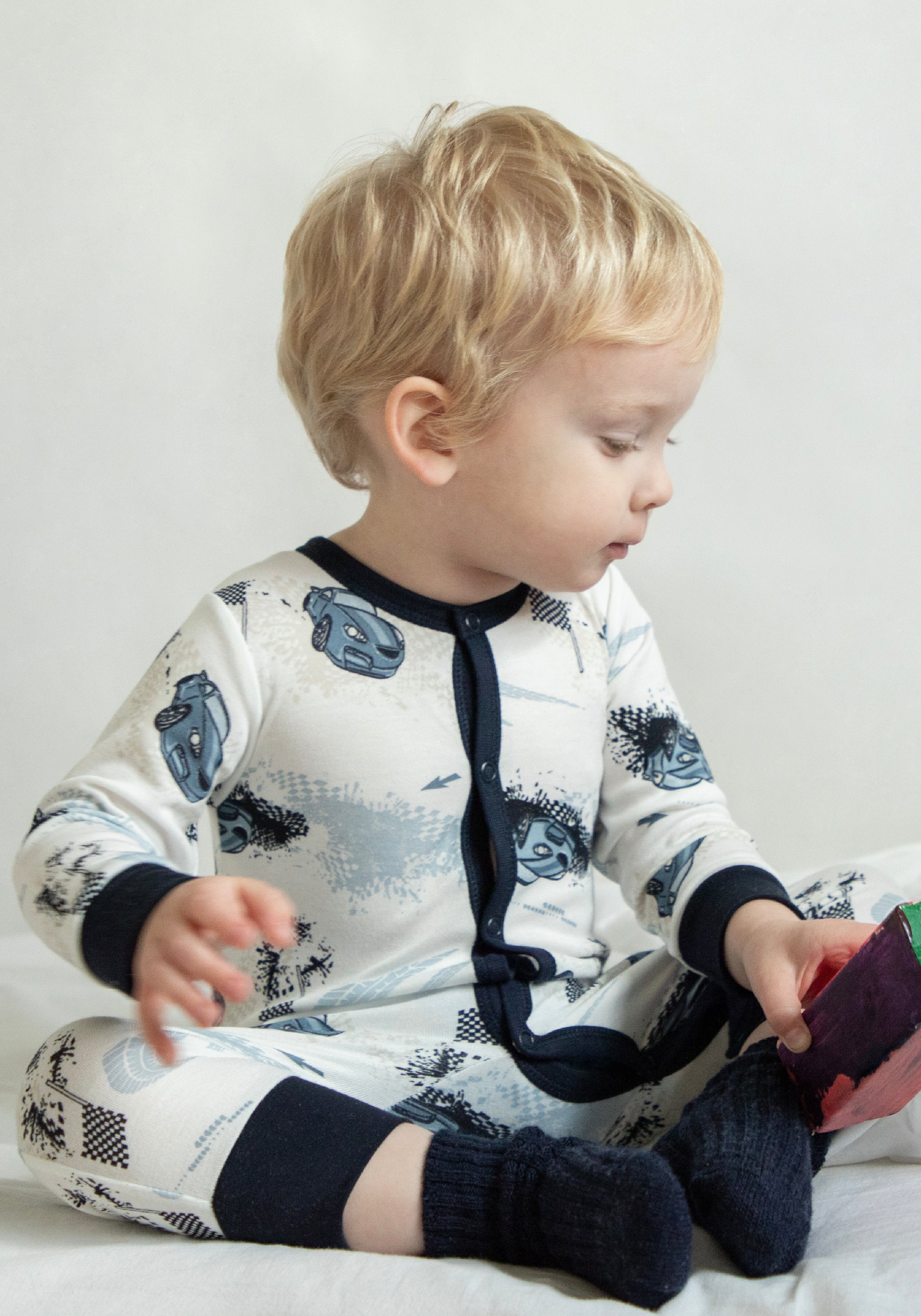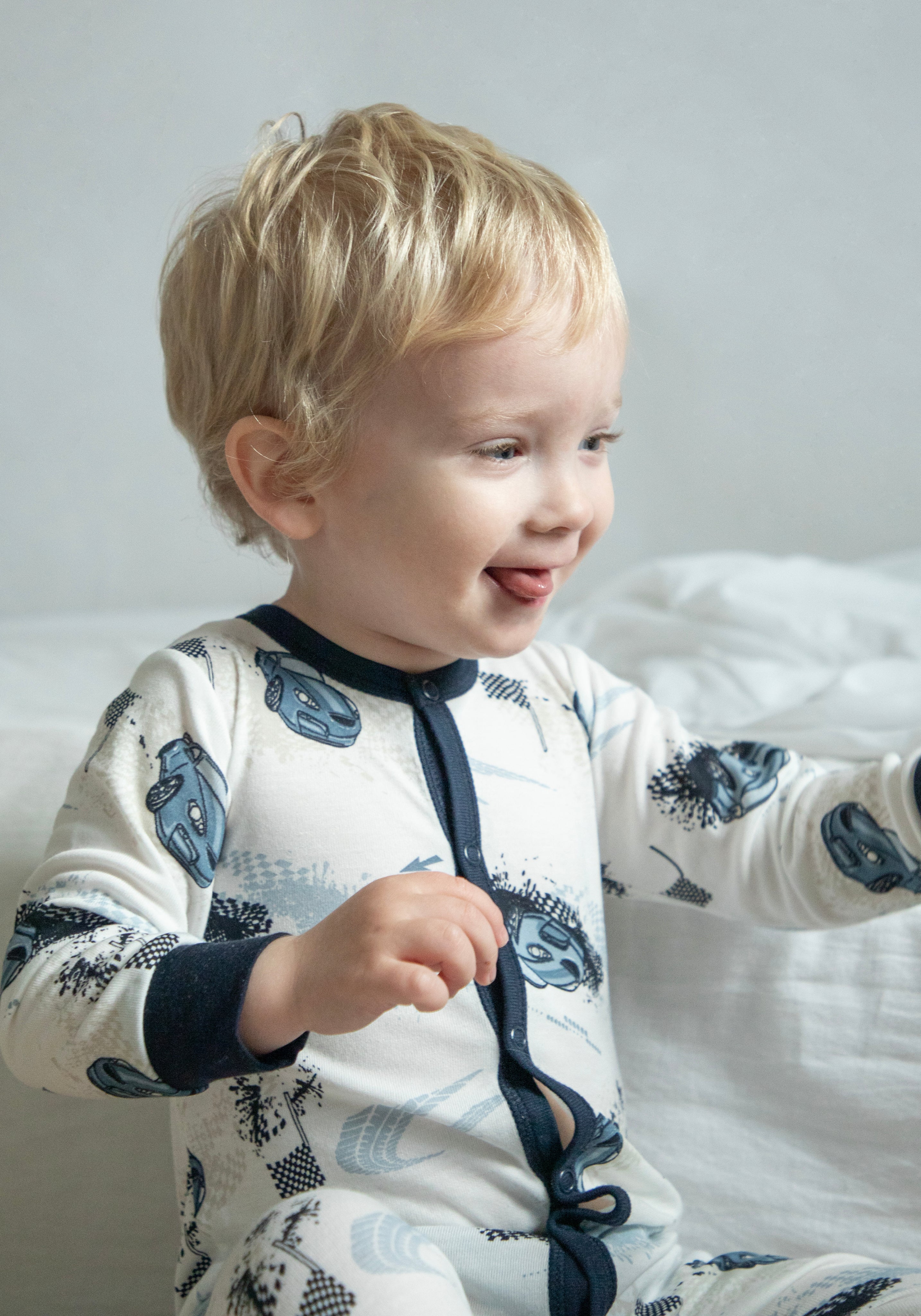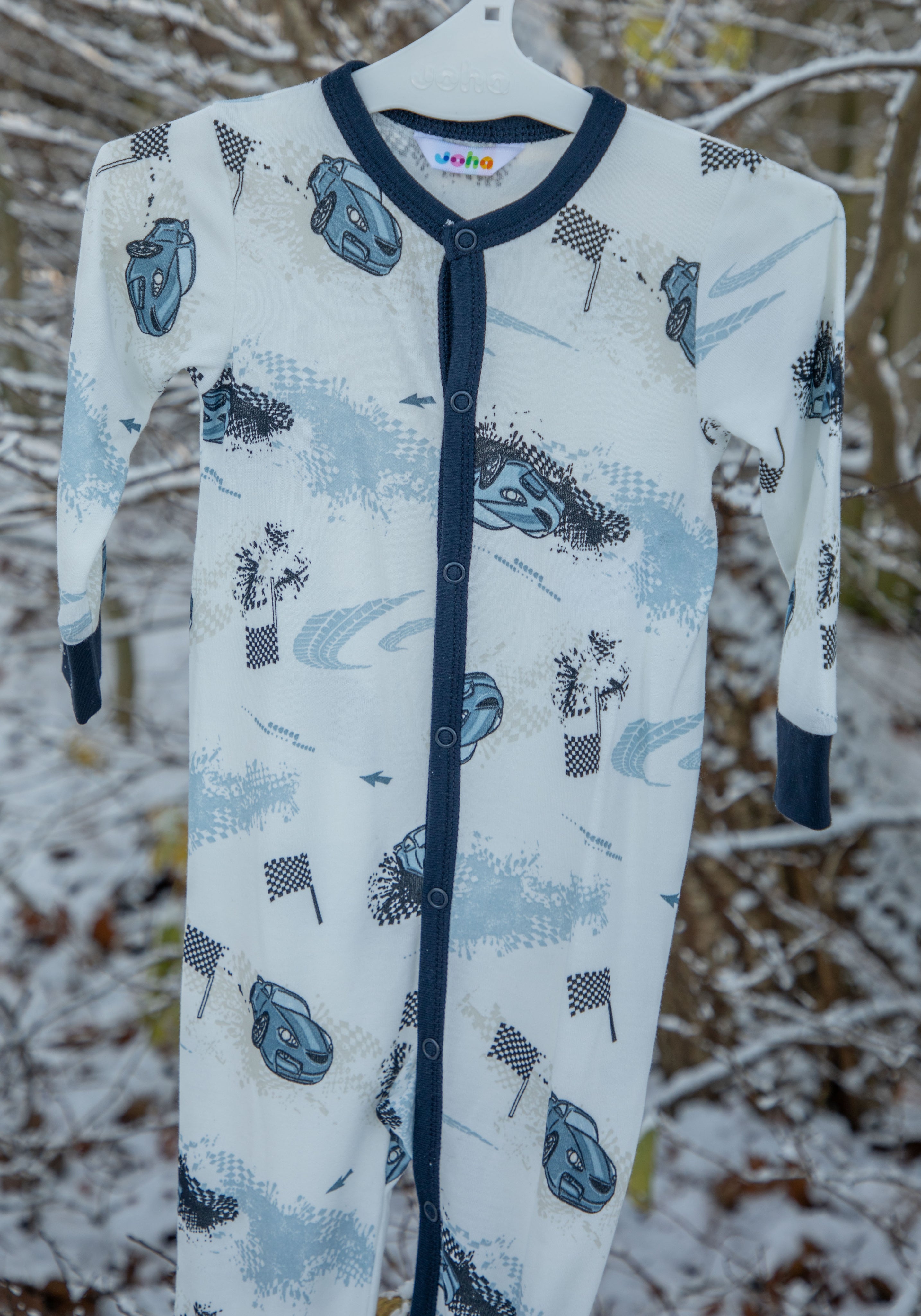 Salopetă comodă din bambus organic fin, ideală pentru cei cu pielea sensibilă.
