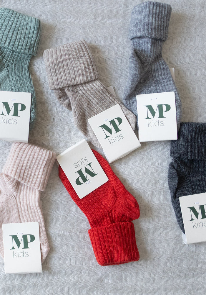 Șosete Rib din lână merinos (copii și femei) - Rosa
