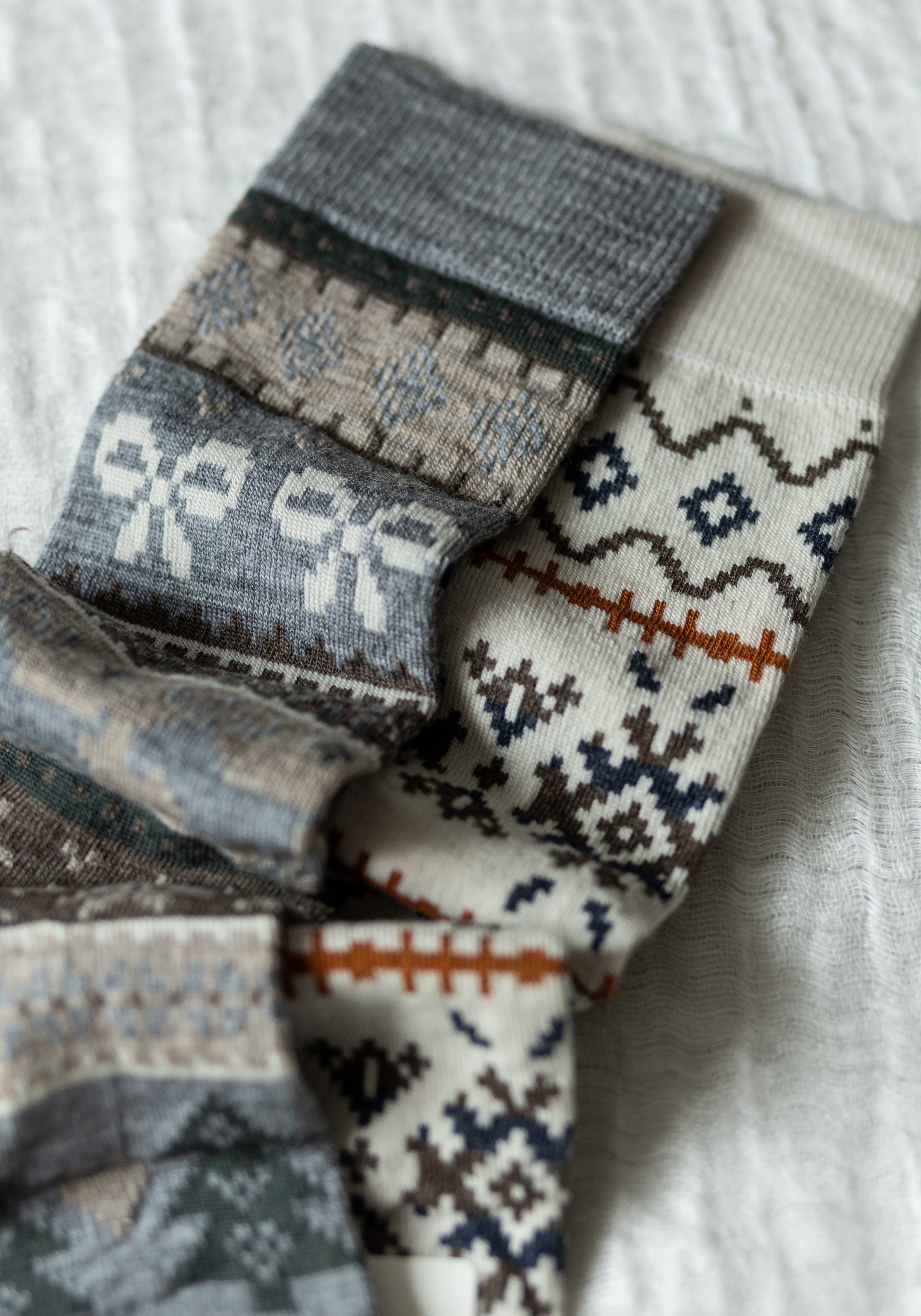 Șosete fine din lână merinos cu model.