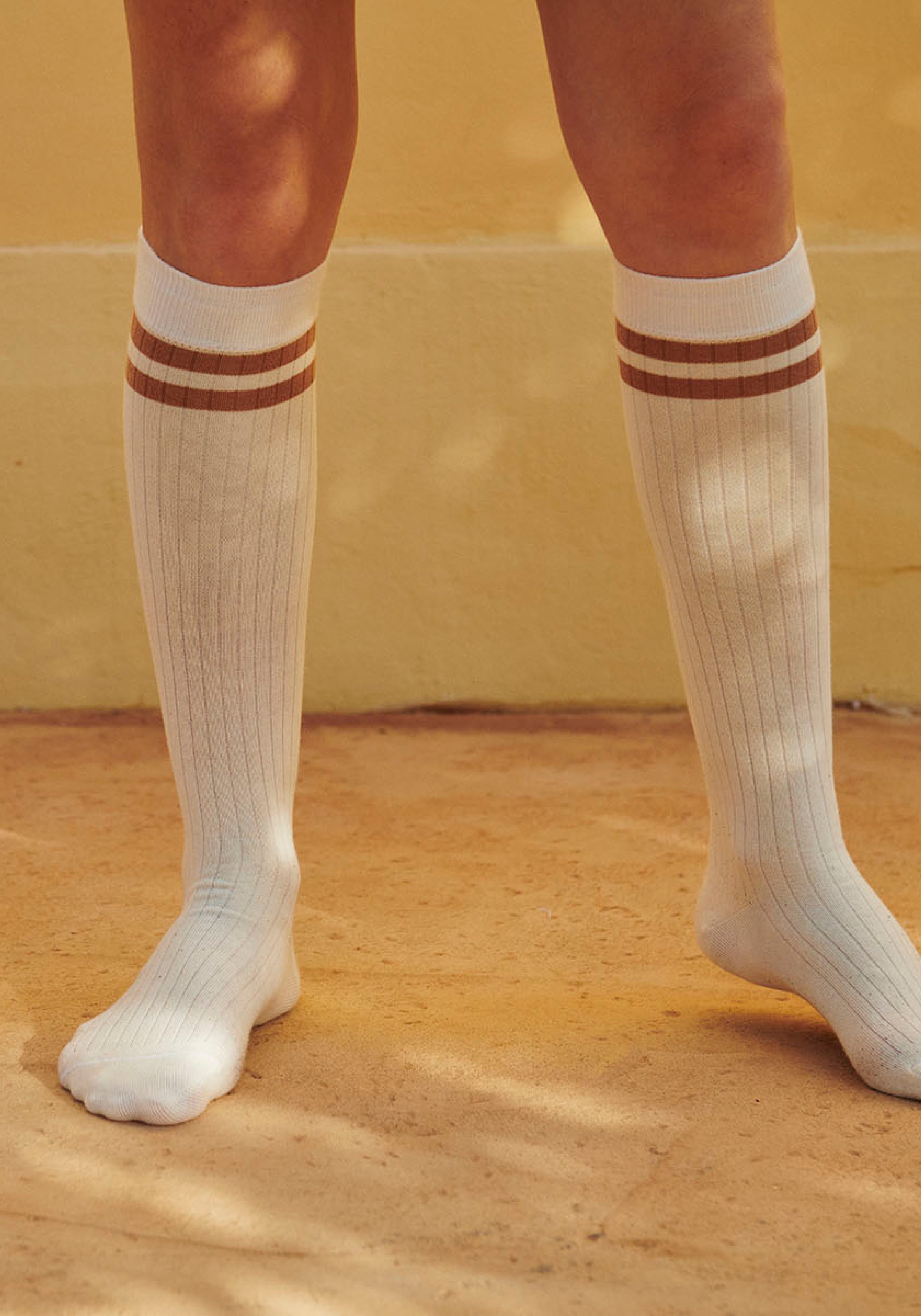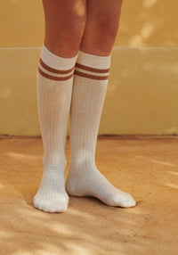 Șosete lungi din bumbac, cu textură fină.
