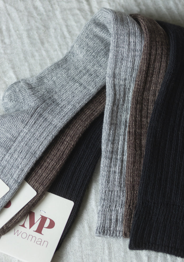 Șosete chunky femei din lână merinos și bambus - Knee Megan Grey