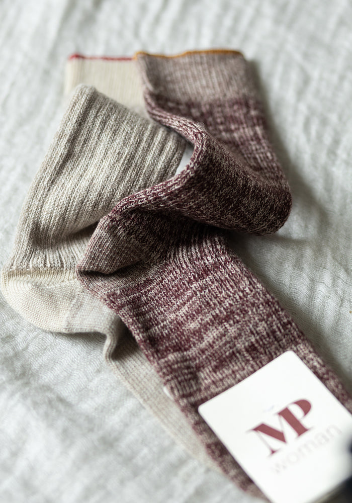Șosete chunky femei din lână merinos și bumbac - Ulrika Wine Red