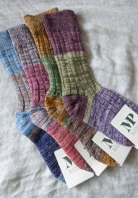 Firul a rămas de la producții anterioare, dar este de calitatea superioară binecunoscută. MP încearcă întotdeauna să adapteze producția la cantitatea de fire, dar resturile de fire sunt inevitabile. Cu șosetele re-stock, materialul primește o nouă viață, astfel se minimizează deșeurile - ZERO WASTE. Fiecare șosetă devine un produs unic, iar culorile pot varia.