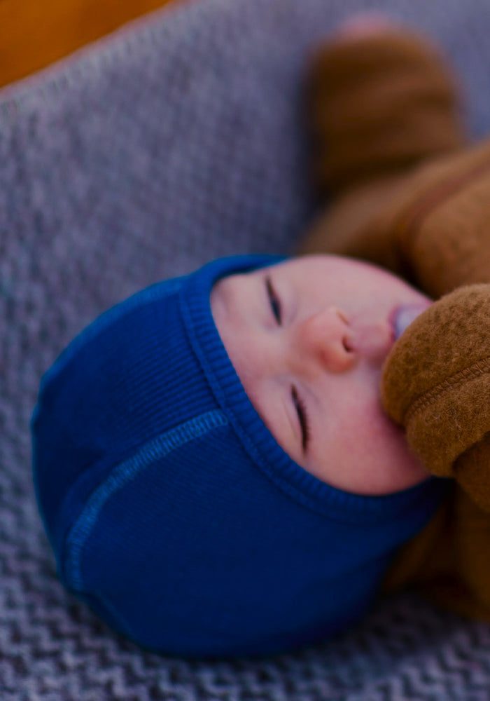 Cagulă dublată din lână merinos și bumbac - Fox Blue