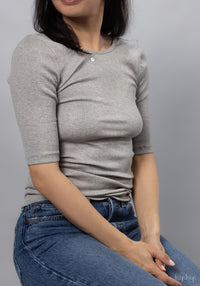 Bluză seamless, cu spatele decoltat și mânecă 3/4 din mătase și bumbac, foarte elastică și comodă, se așază perfect.