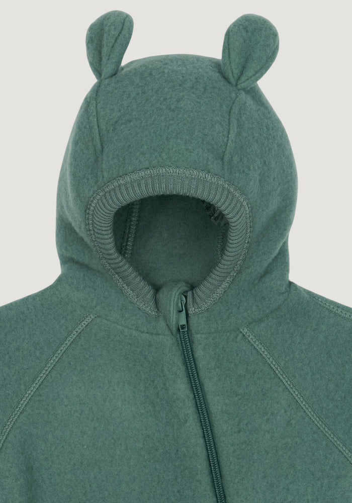 Salopetă cu mănuși și botoși fleece din lână merinos - Teddy Bear Balsam Green