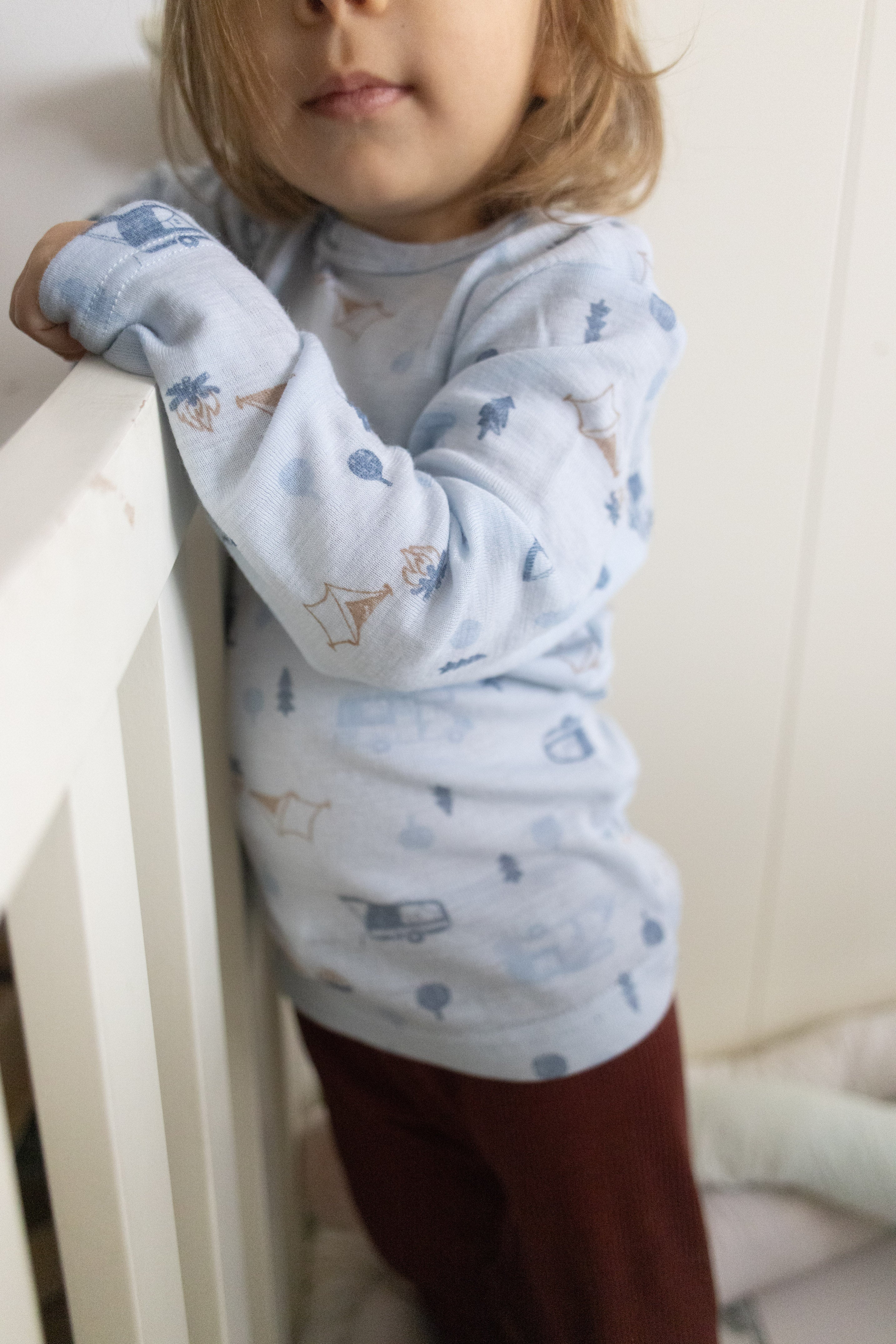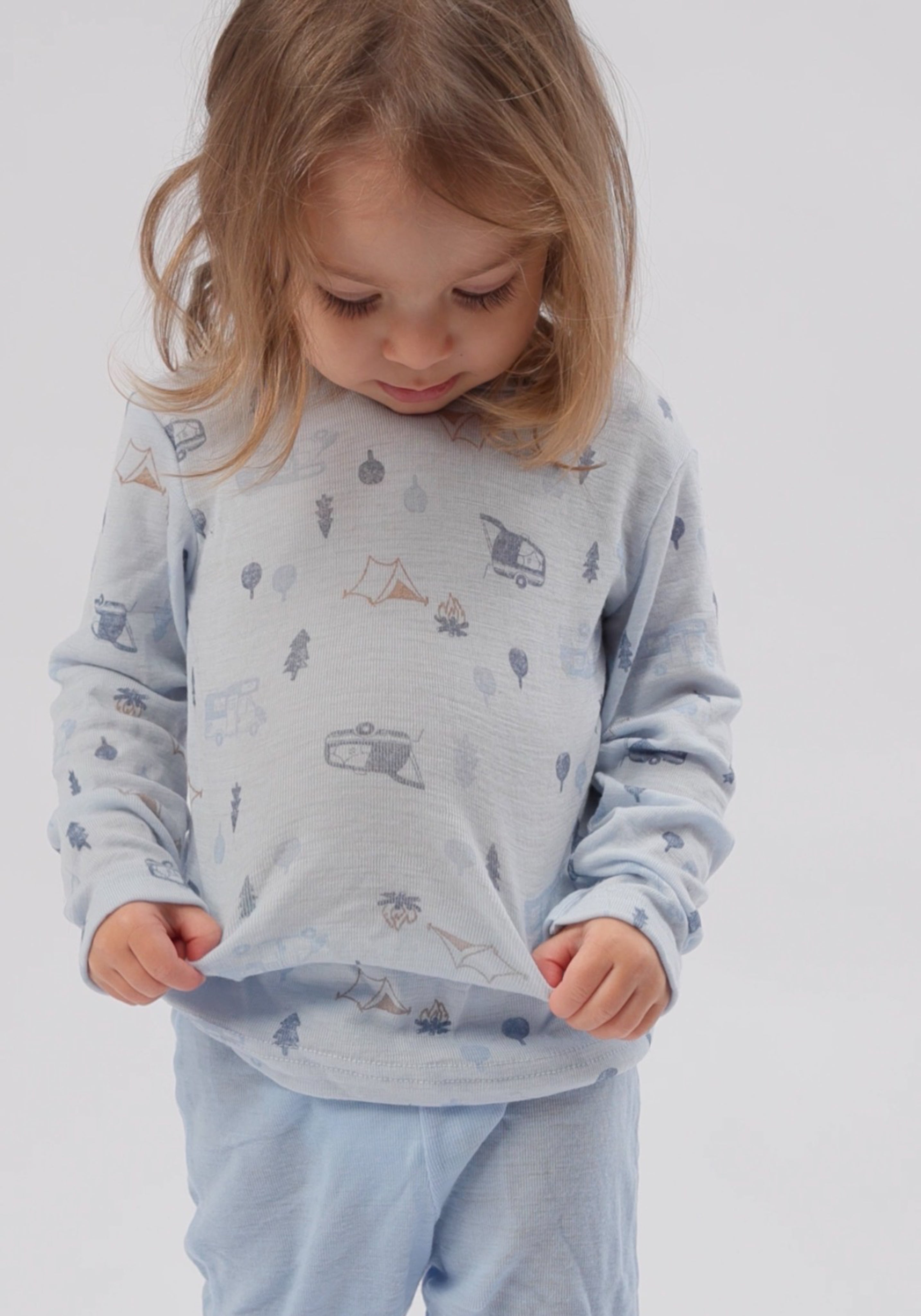 Bluză din lână merinos - Camping Light Blue