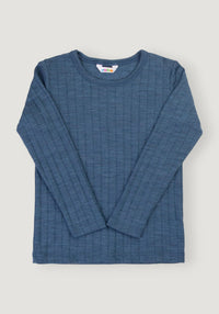 Bluză din lână merinos și mătase - Blue Melange