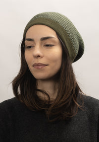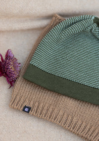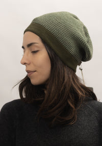 Căciulă din lână merinos - Olive/Jade