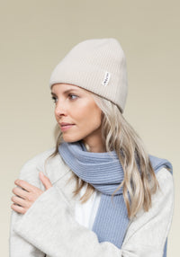 Caciulă beanie din mix de lână merinos și cașmir, cu o finețe și rezistență aparte.