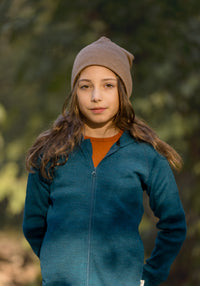 Căciulă beanie brushed din două straturi de lână merinos, foarte călduroasă, ușoară și elastică.