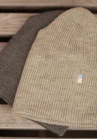 Căciulă dublată din lână merinos - Rib Beige Melange