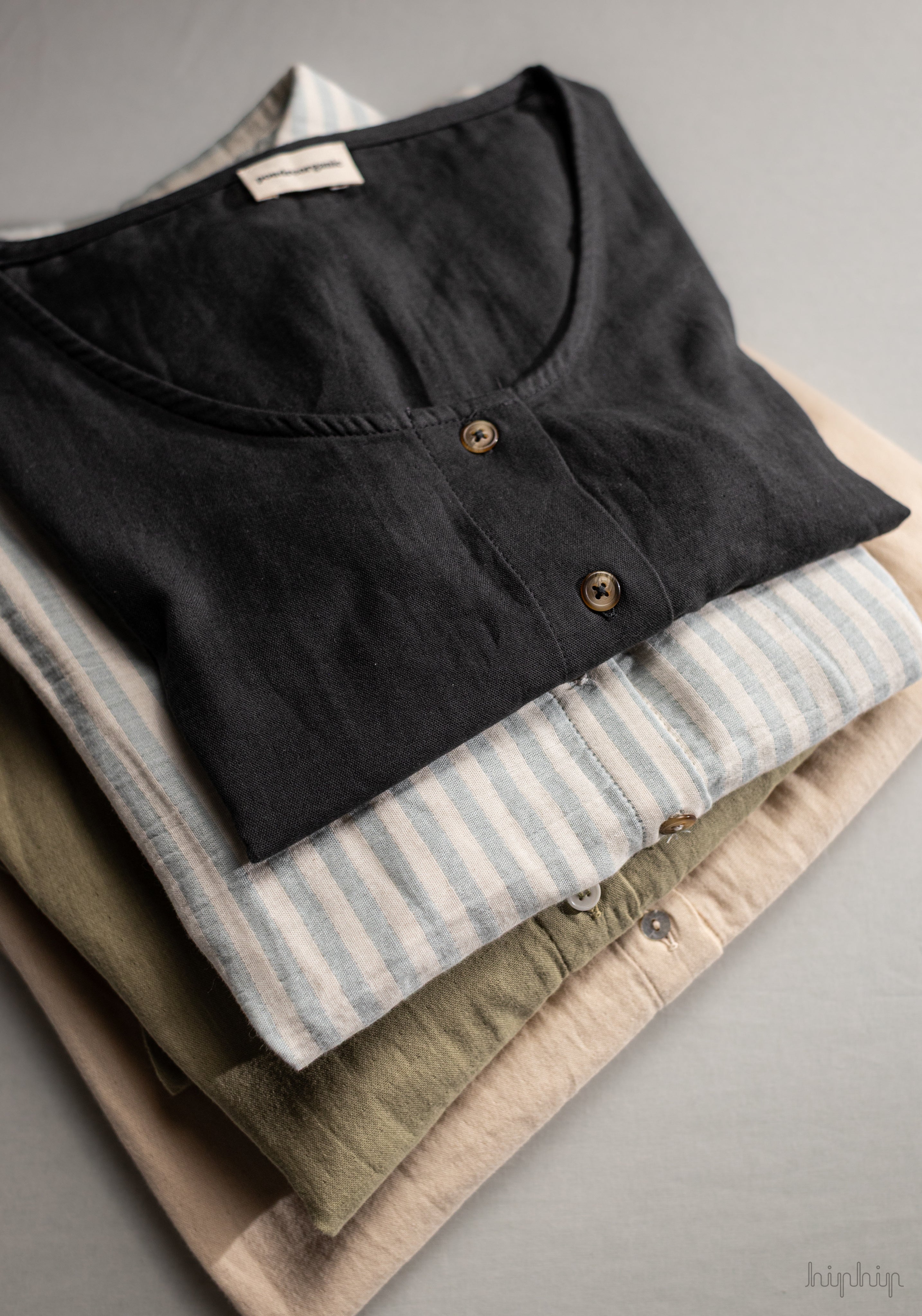 Când vine vorba de decizii ”de business”, Manon și Quentin țin cont în primul rând de impactul asupra mediului. Le vine ușor, pentru că și în viață personală sunt ghidați de principiul ăsta - consum local și rațional. Lucrează, în principal, cu bumbac cultivat organic în Turcia, certificat GOTS și OEKO-TEX, dar și cu in și materiale reciclate, prelucrate cu consum minim de energie.