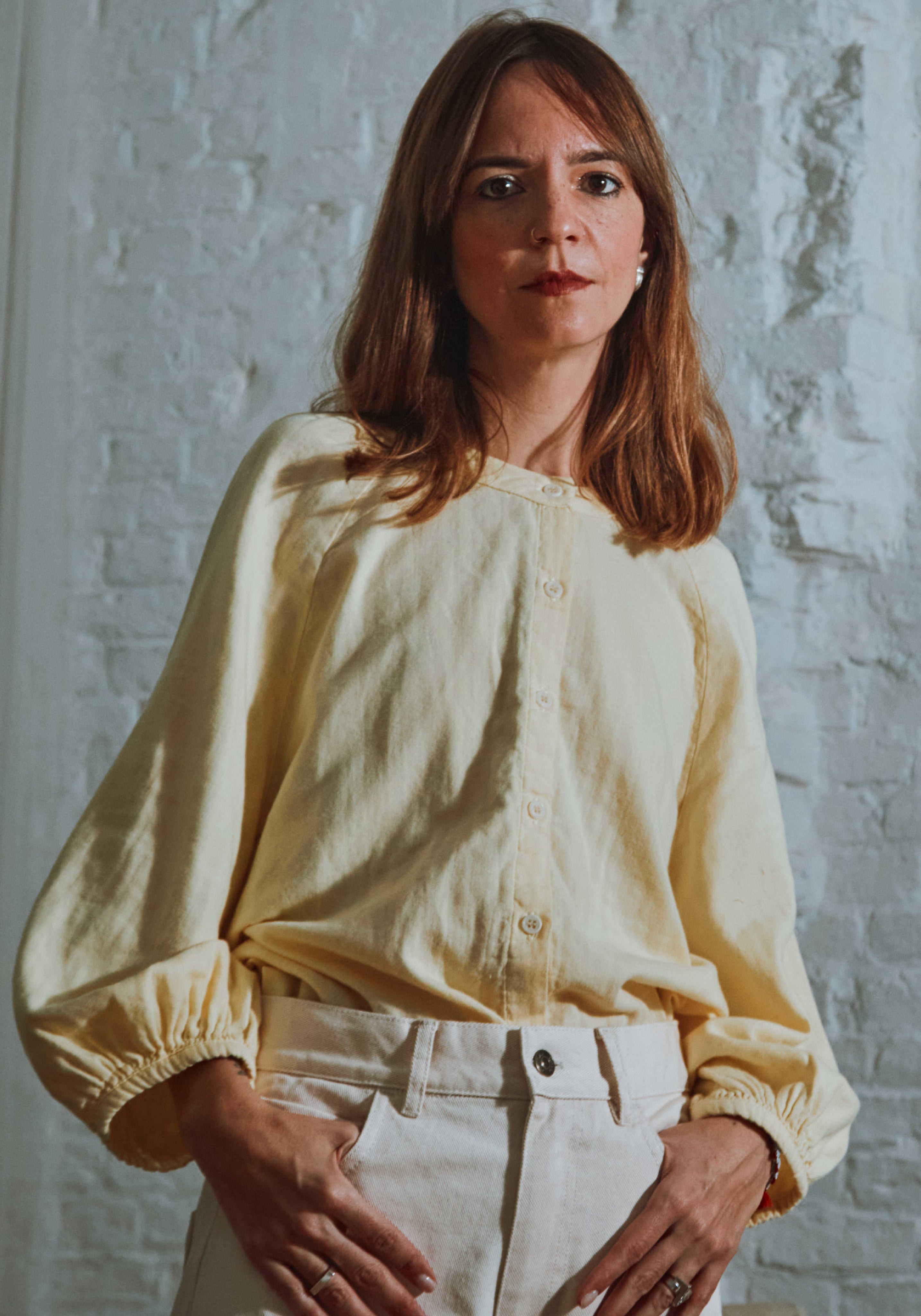 Cămașă femei din muselină dublă de bumbac - Onagre Pastel Yellow
