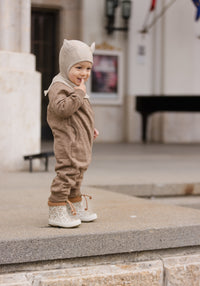 Cizme scurte pentru primii pași din cauciuc natural, căptușite cu lână, izolează foarte bine și mențin picioarele uscate și calde. Le recomandăm în special pentru toamnă târzie și iarnă.