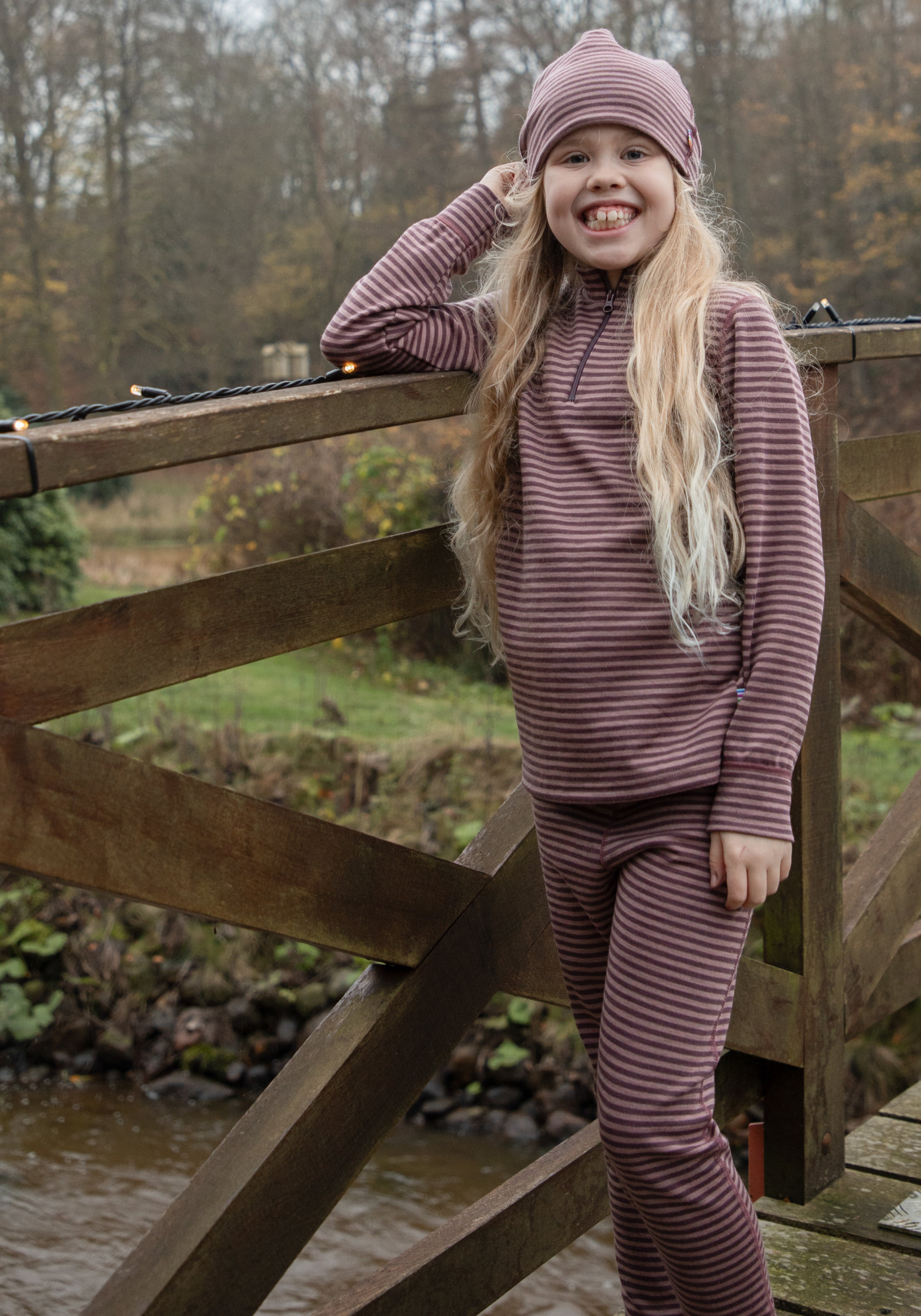 Bluză cu fermoar lână merinos - Mini Stripe Rose