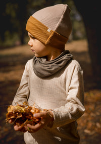 Fular circular din lână merinos și mătase - Brown Melange