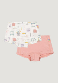 Chiloți hipster pentru fete din bambus organic fin. Set cu două bucăți, una cu imprimeu și una uni.