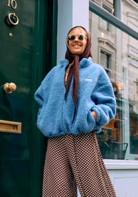 Jachetă bomber oversize fleece din lână merinos - Teddy Ice Blue