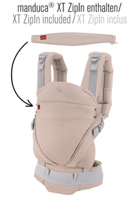 - Înăltimea panoului este ajustabilă pe trei niveluri datorită sistemului unic de reglare (patent Manduca). Zipin-ul XT este inclus în pachet.