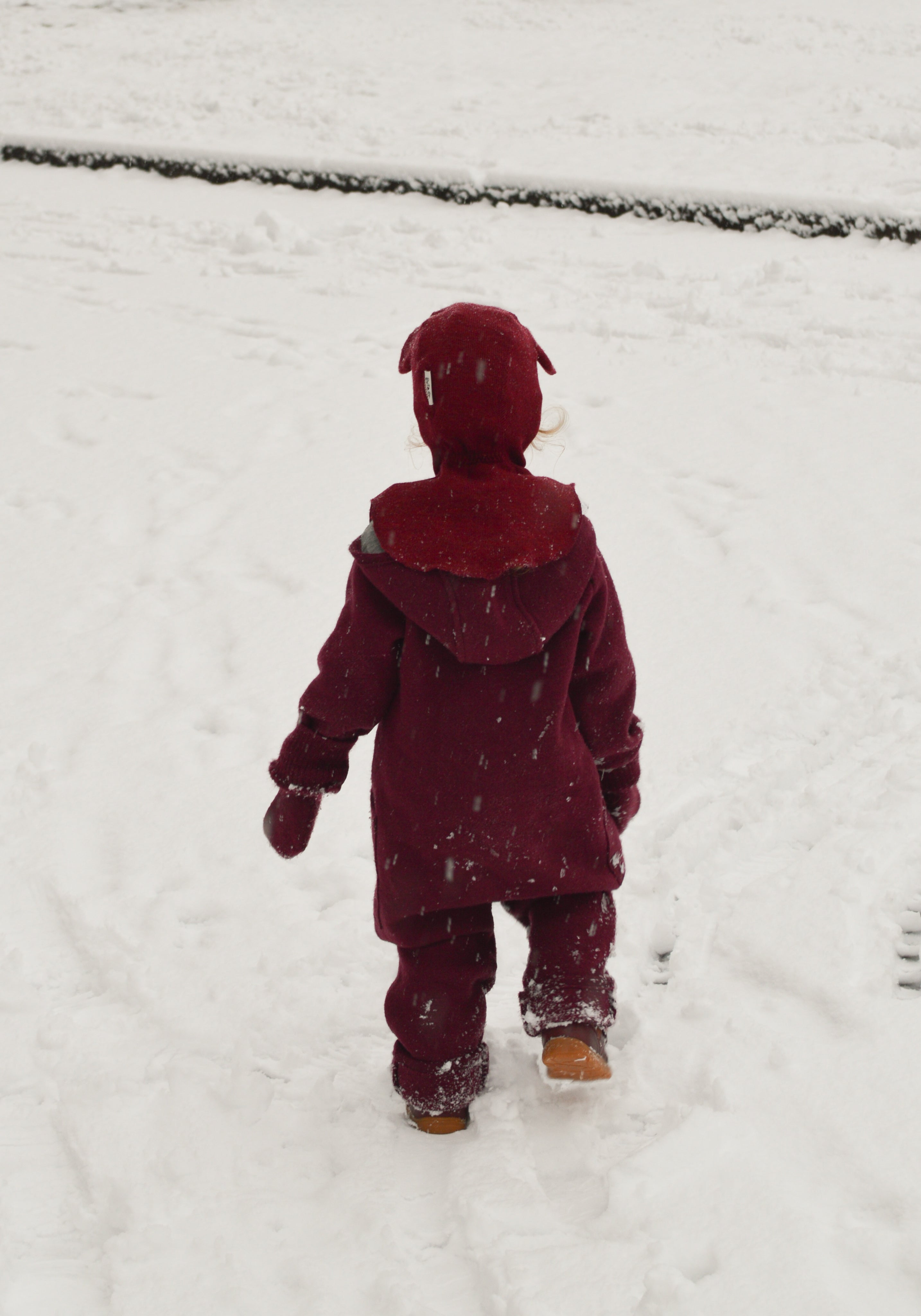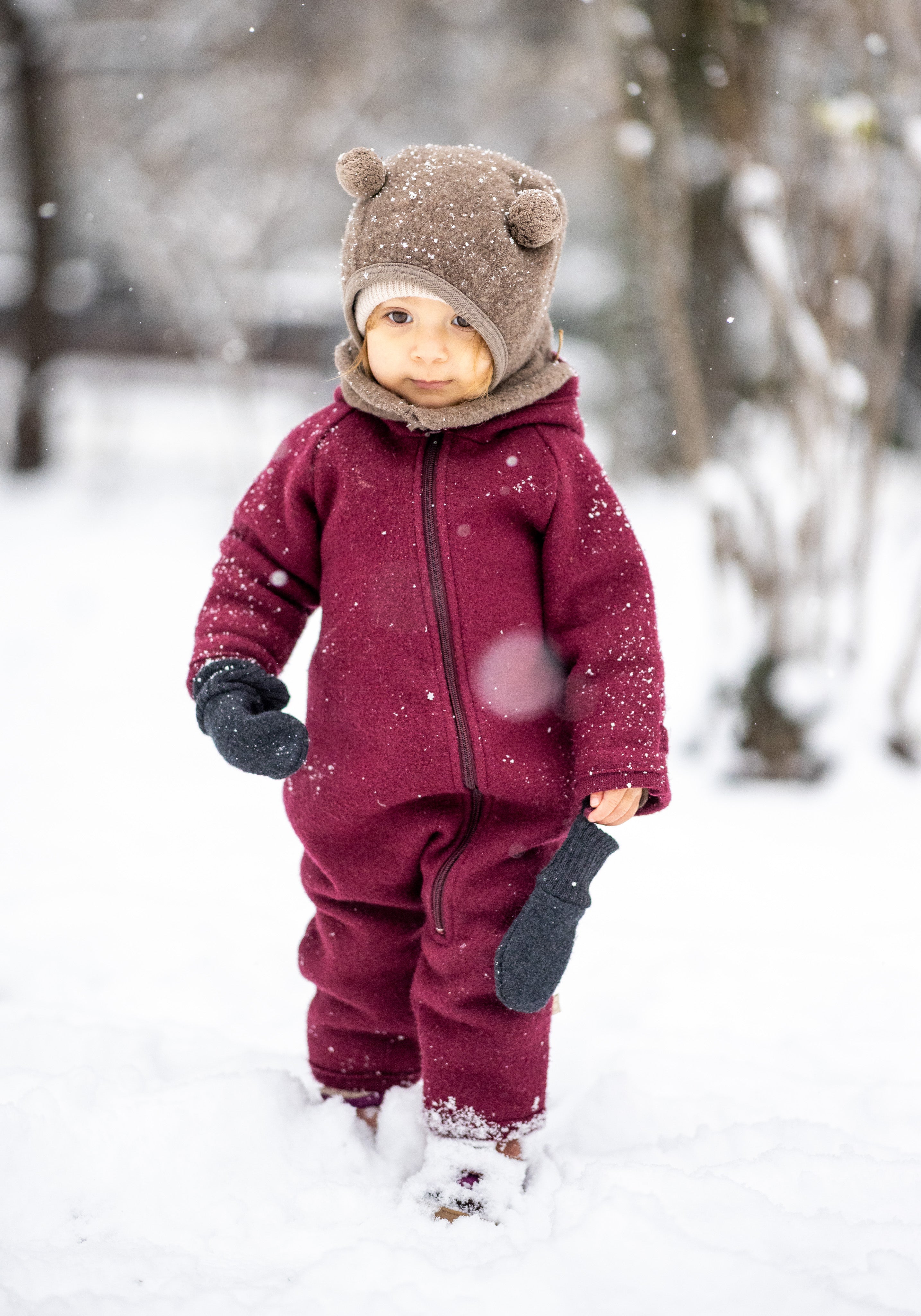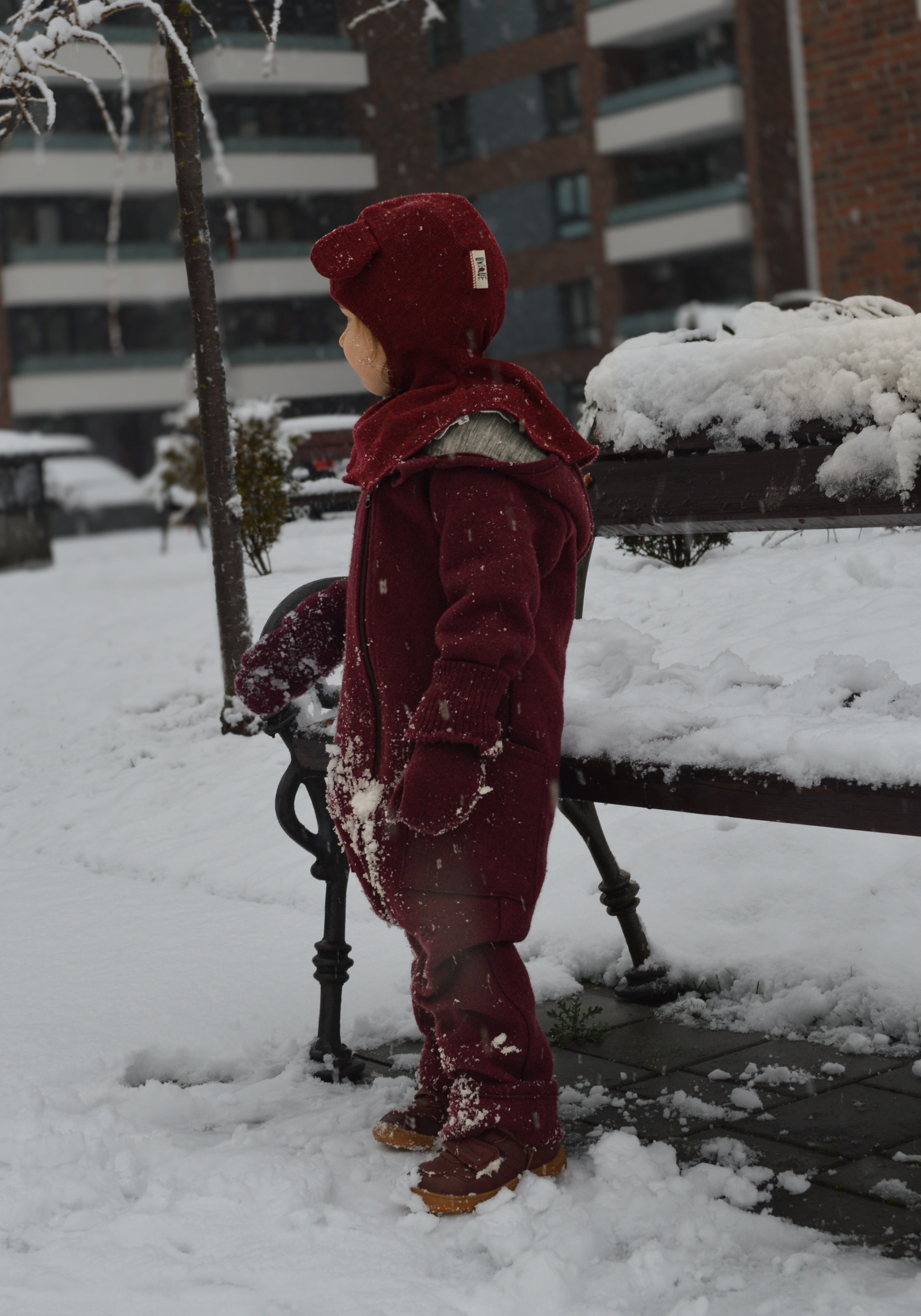 Salopetă cu mănuși și botoși din lână merinos fiartă - Cassis