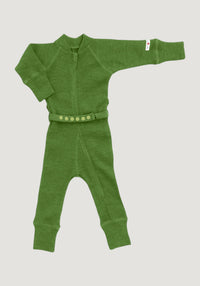 Costum întreg/salopetă din lână merinos, oferă caldură și libertate de mișcare.