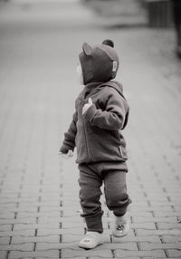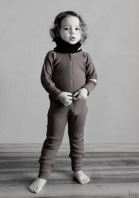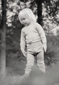 Costum întreg/salopetă din lână merinos, oferă caldură și libertate de mișcare.
