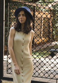Rochie lungă din bumbac organic, cu efect de alungire a siluetei.