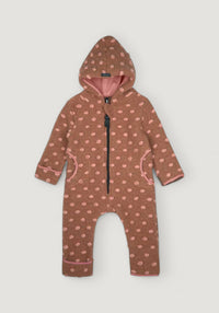 Salopetă cu botoși și mănuși din lână fiartă - Hazelnut Dots