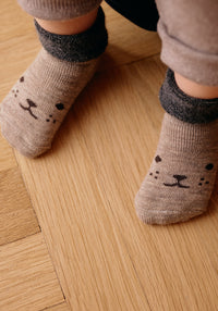 Șosete groase, moi și călduroase din lână merinos, flaușate la interior.